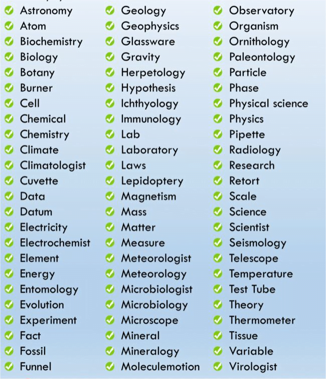 Science is replete with terms that recur across various disciplines. Familiarity with these terms is essential for students to build a solid foundation in science. Here are a few examples:Â