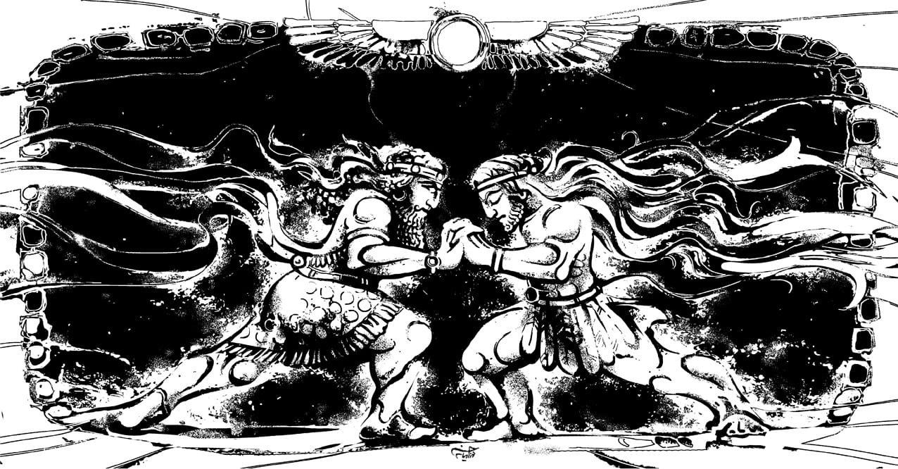 The epic begins by praising Gilgamesh’s achievements and stating that the narrator will share his deeds with the world. The unnamed narrator describes the city of Uruk, highlighting its impressive burnt brick walls and masonry. We also learn that Gilgamesh is a unique being, being two-thirds god and one-third man. This fact is crucial as it makes Gilgamesh a hero and sets the stage for his future accomplishments and adventures. However, his human side means that he is also mortal and will eventually face death. This introduces an important theme: life would not hold the same meaning without mortality.