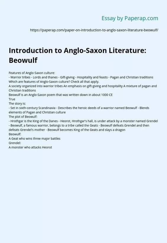 This article will discuss the development of Anglo-Saxon literature and the poem Beowulf.