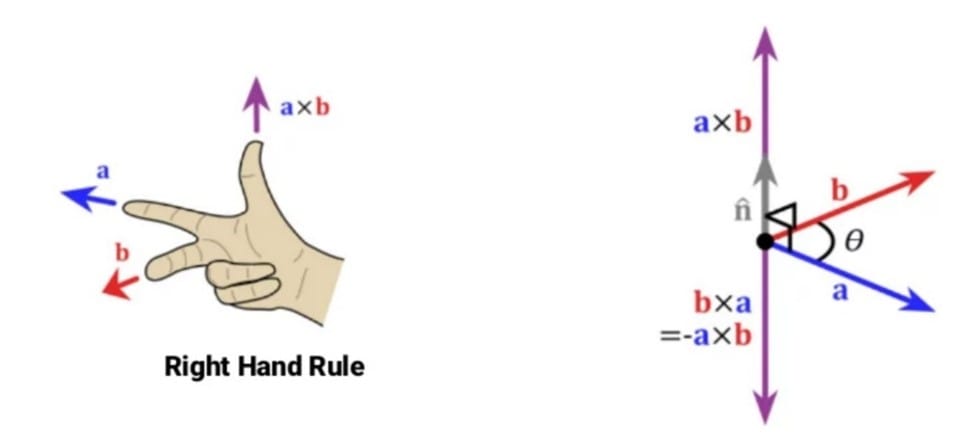 A × B = |A| |B| sin(θ) n