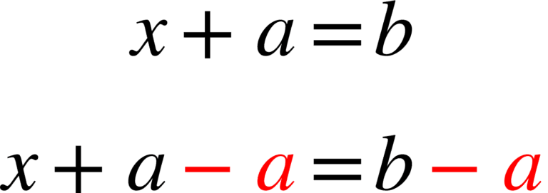 Take the algebraic formula x + 4 = 40. We must now take 4 away from both sides of the equation in order to determine the value of x.