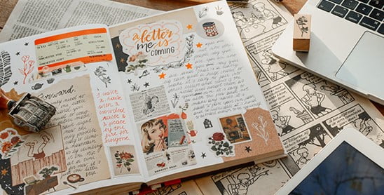The journal should be something that you enjoy looking at and using. You might want to have a journal with thick paper that can withstand paints and markers, or a journal with blank pages that you can customize however you like.