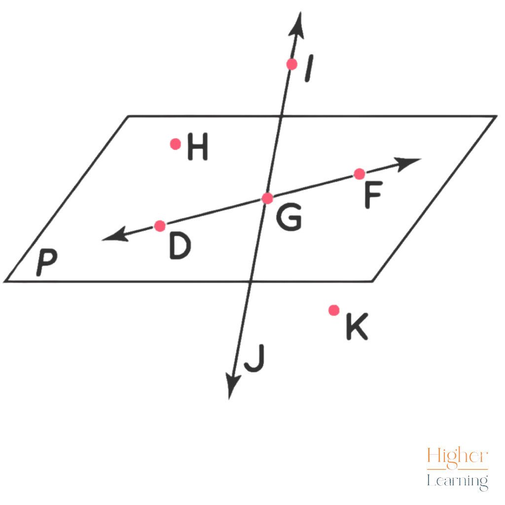 The plane’s vertices can be given names. Therefore, the plane in the above diagram might go by the names HDF, HGF, or HGD.Â